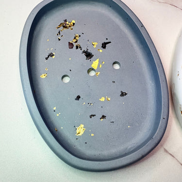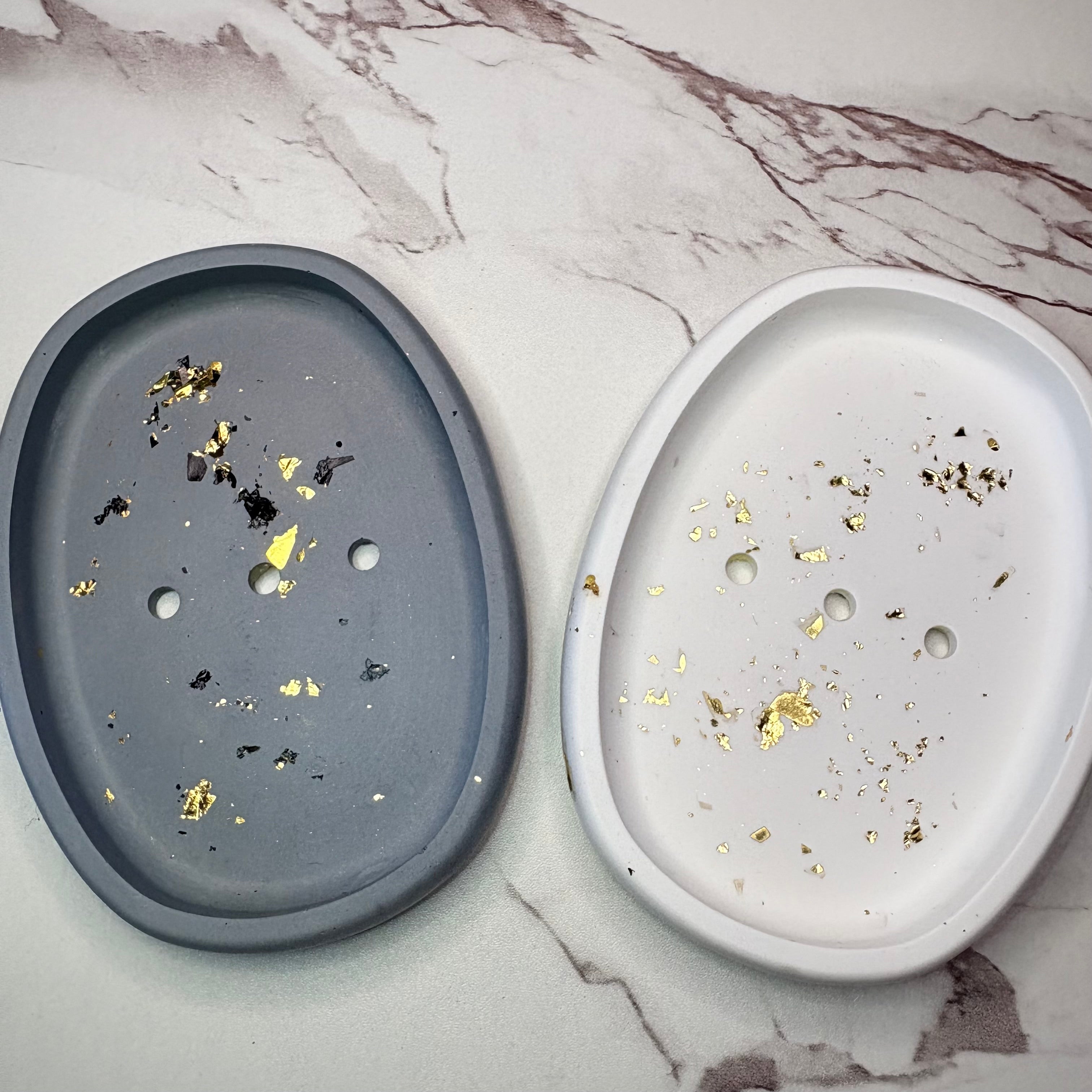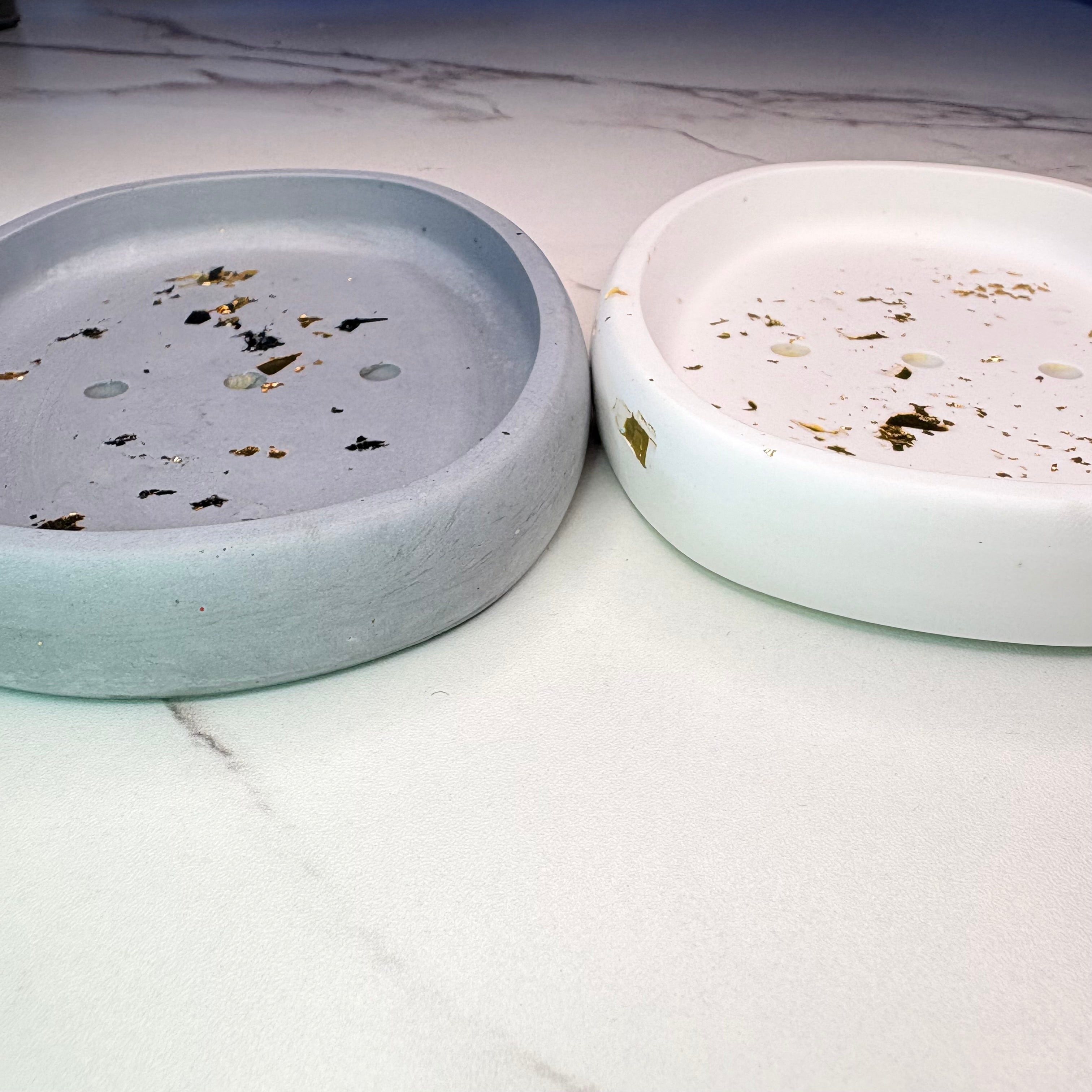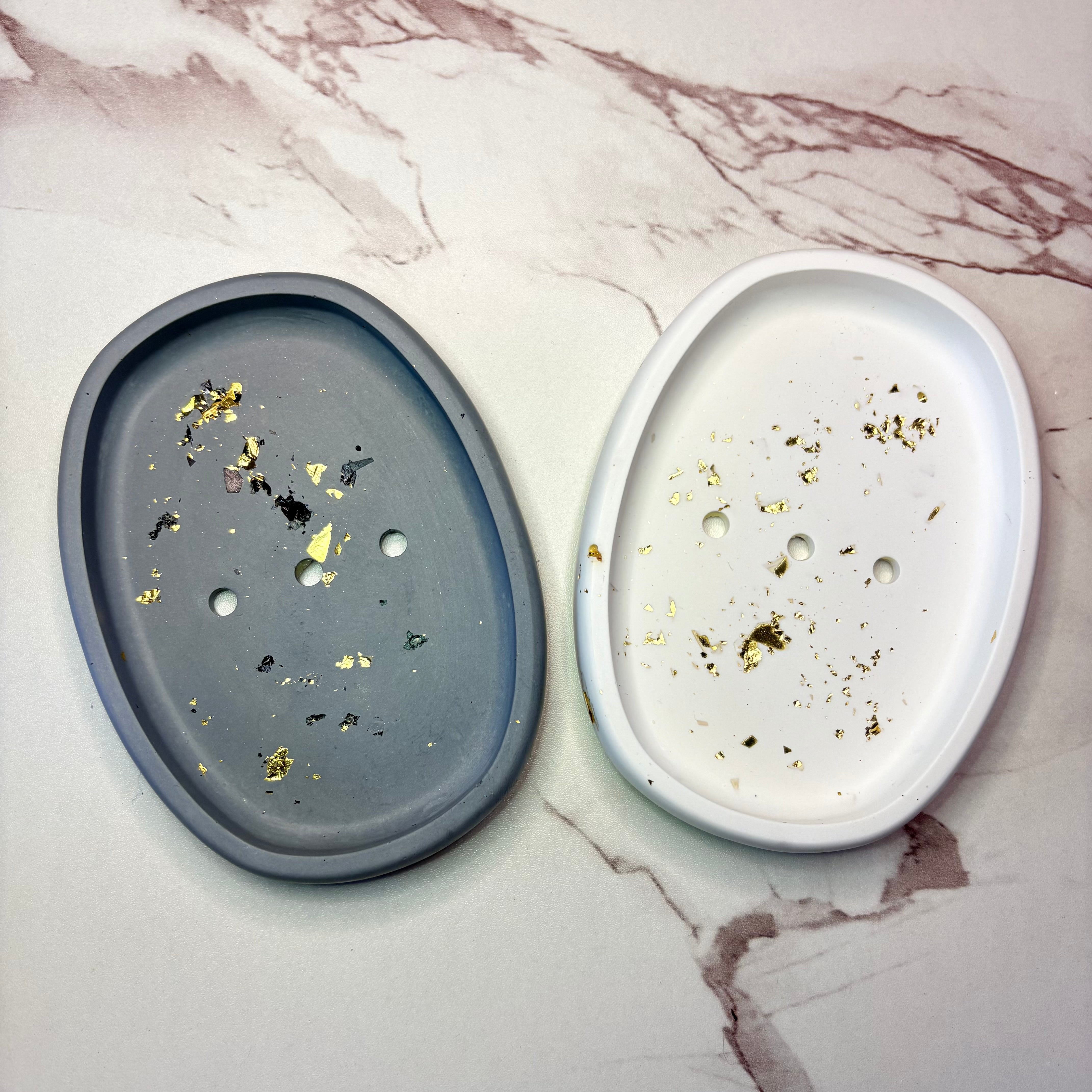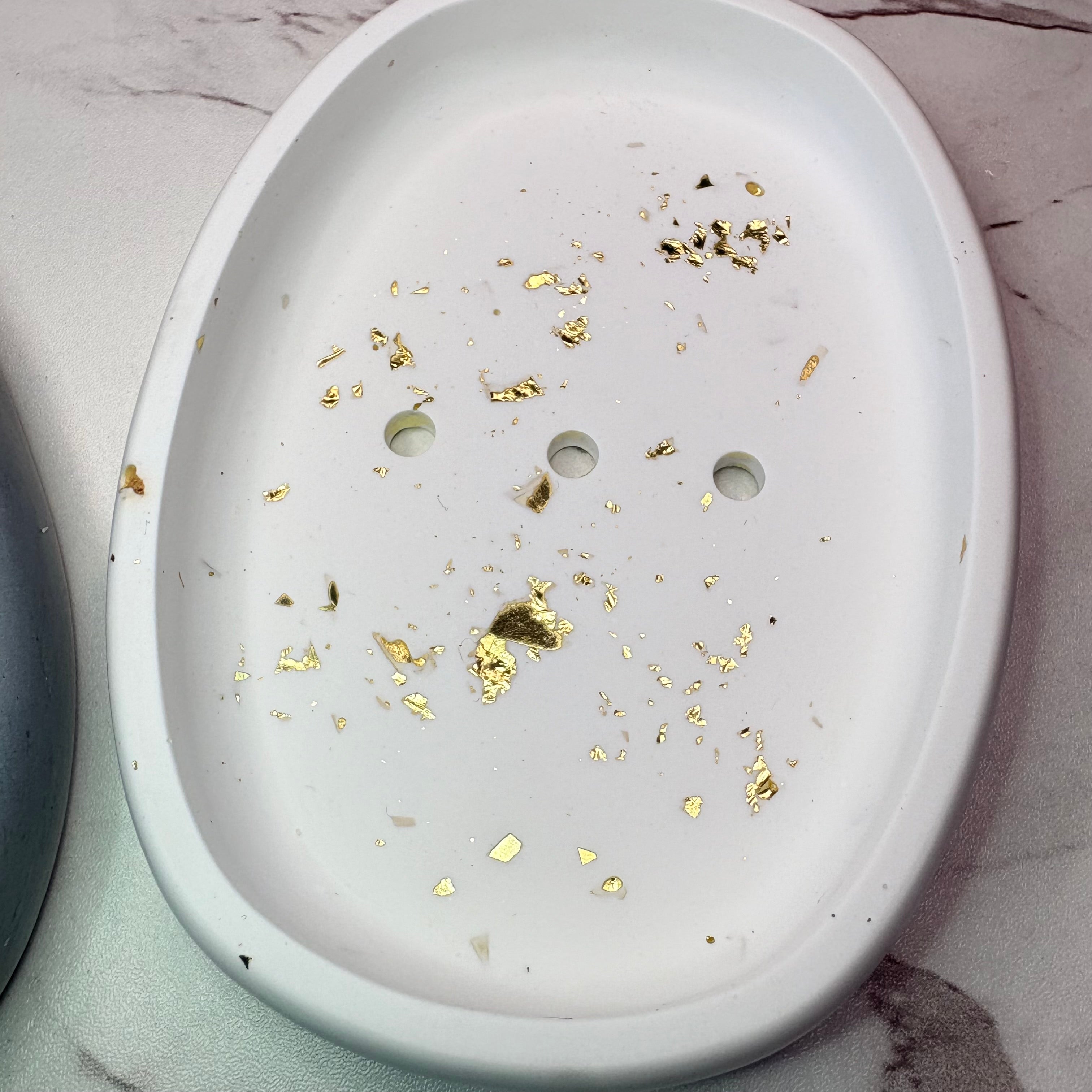 Handmade Oval Soap Dish with Drainage Holes. Available in Grey or White with Gold Specks