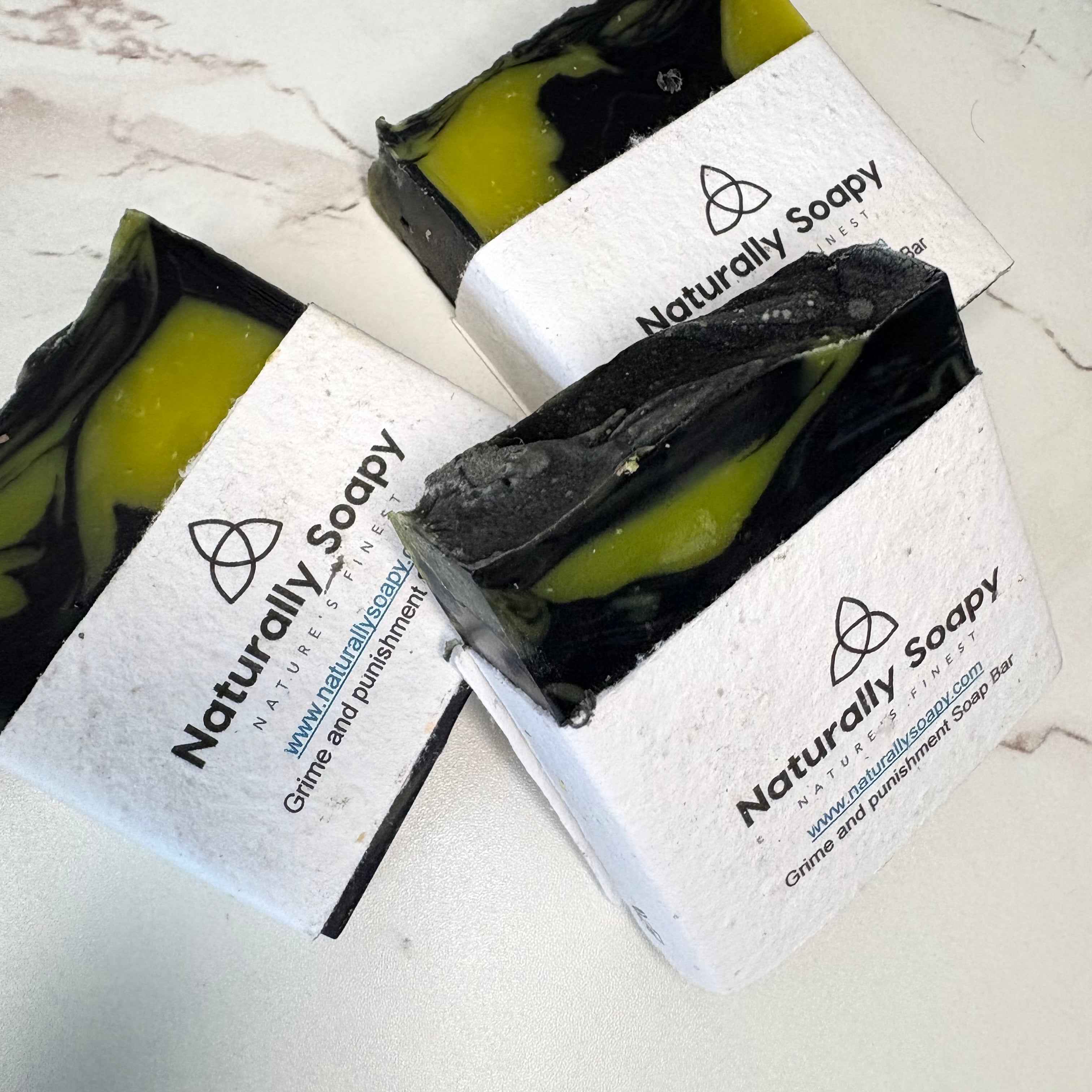 Grime & Punishment. Lemon & Lime, Charcoal Soap Bar